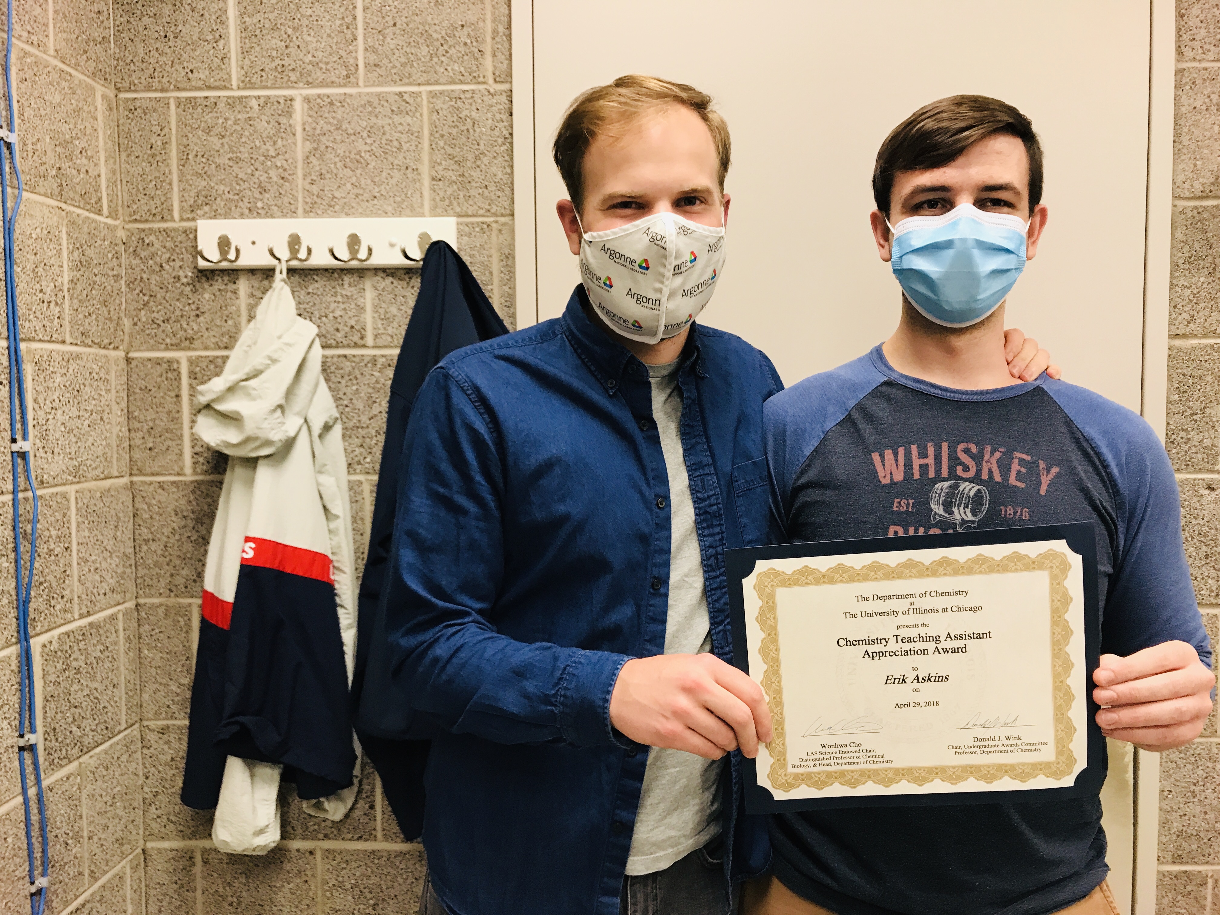 June 1, 2019. Erik was recognized as one of the top teaching assistants in the chemistry department at UIC. He was given the Chemistry Teaching Assistant Appreciation Award during a departmental ceremony. |