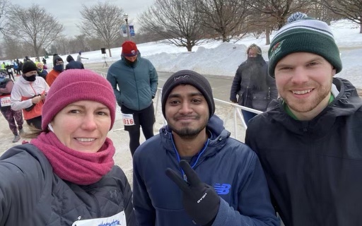 February 5, 2022. Dr. Glusac, Biki, and Erik completed a half-marathon outside in the chilly, Chicago winter weather. More races are planned for the future. |