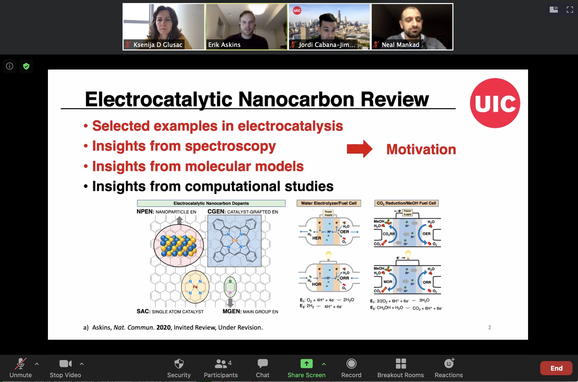 November 6, 2020. Erik presented his preliminary exam (via Zoom), entitled, "Fundamental Studies of Electrocatalytic Nanocarbons" and passed with flying colors. Congratulations to him and we're excited to see what's next. |
