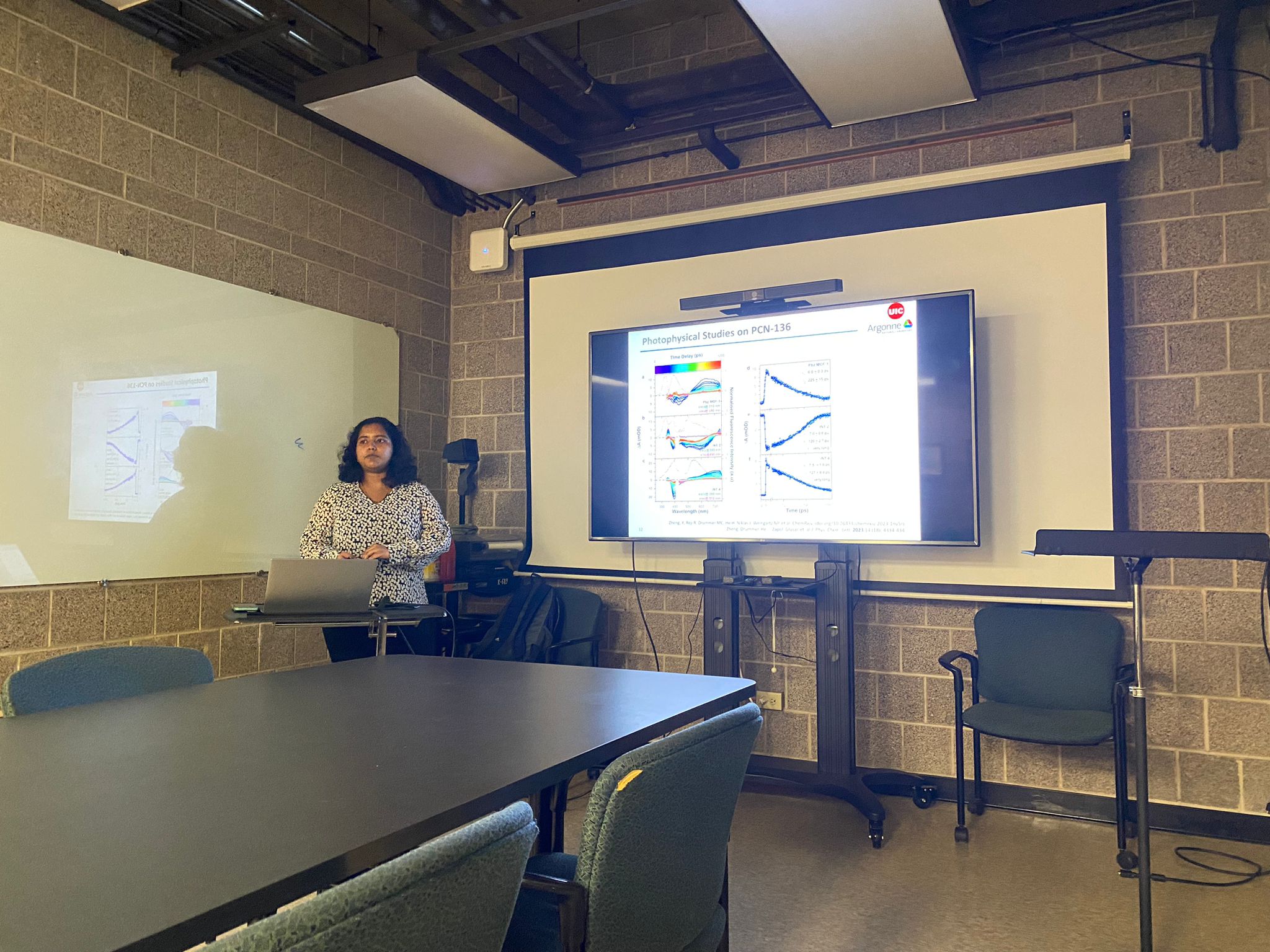 May 11, 2023. Rosmi presented her preliminary exam, which was titled, "Photoreductive CO2 capture using Zr-nanographene MOFs" and received much praise from her exam committee. We are proud of you Rosmi. |