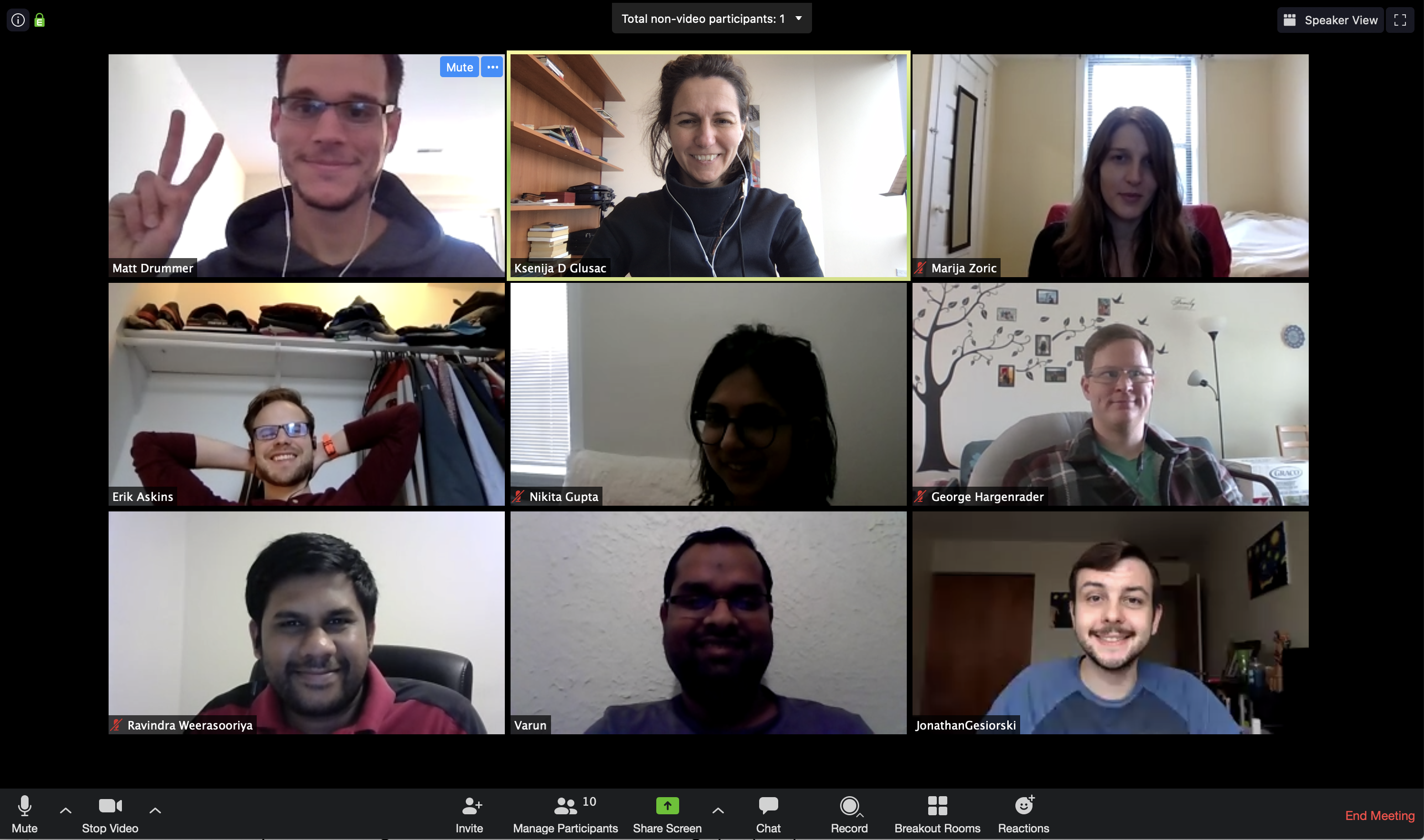 March 6, 2021. Marija did an excellent job presenting her PhD work. The committee members were very impressed, even saying, "I should have asked my PhD students to attend, to see what a defense should look like." We are very proud of Marija and excited to see what science her Postdoc at SLAC will produce. We celebrated with a socially distant Zoom meeting where we played Among Us and Pandemic online. |